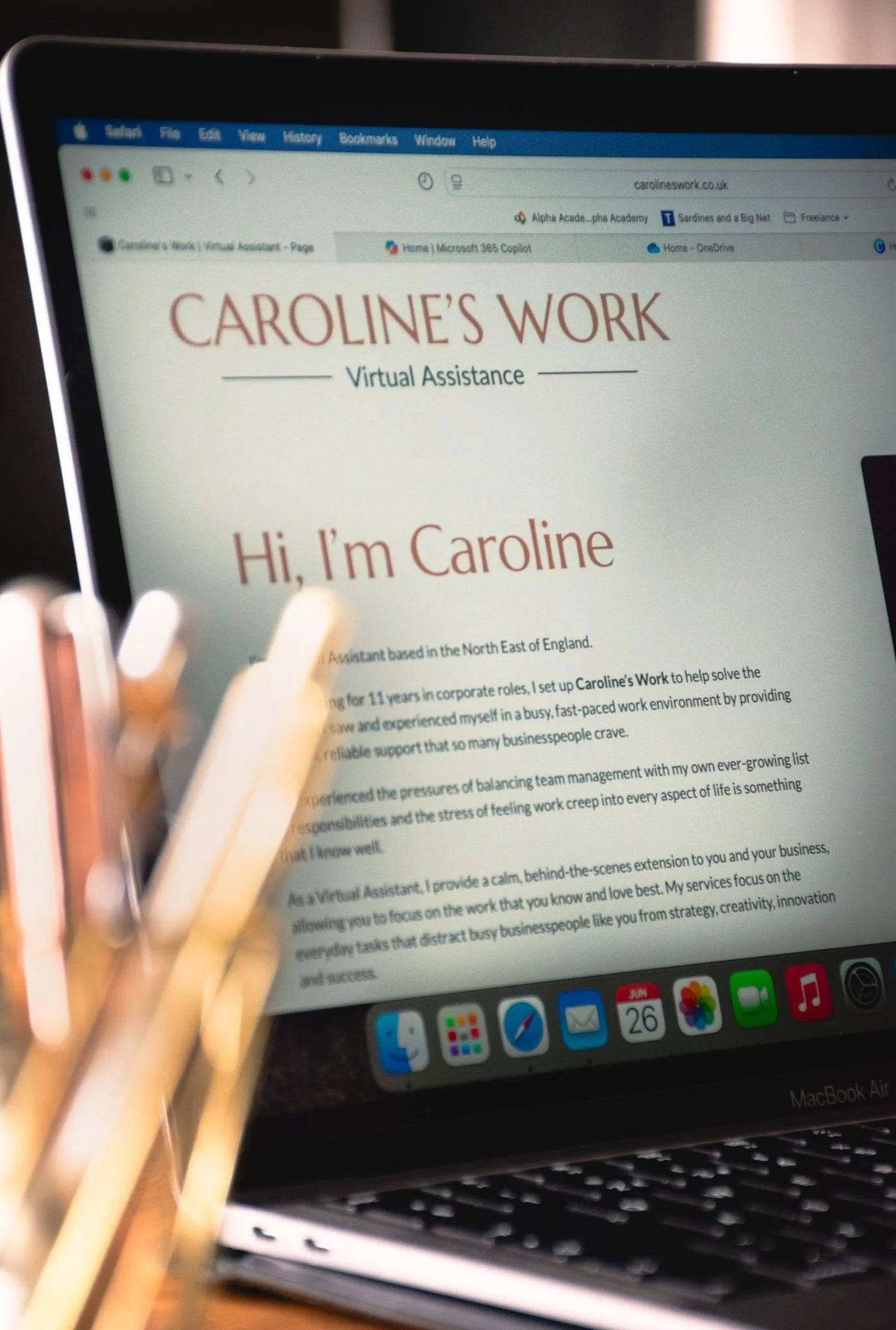 I’m Caroline, a Virtual Assistant working with busy professionals and creative founders to free up time and resources by eliminating the chaos with calm, behind-the-scenes support.